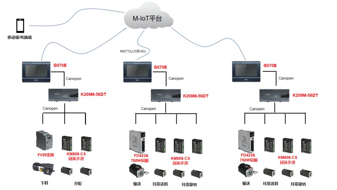 步科口罩機Plus方案,在CANopen總線伺服驅動產(chǎn)品基礎上,迅速升級M-IoT物聯(lián)網(wǎng)遠程運維服務,快速完善了設備報警和維護信息,增加了遠程診斷服務功能,進一步打通了現(xiàn)場、設備商和部件商的溝通渠道,幫助現(xiàn)場人員快速排查故障。