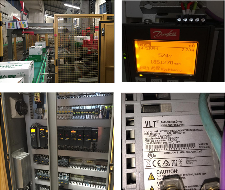 這次在東莞市莞怡食品飲料有限公司(生產(chǎn)怡寶品牌飲用水)的紙箱堆垛機(jī)上選用的丹佛斯 FC302+IMC 方案,通過現(xiàn)場實(shí)際運(yùn)行證明 IMC 定位控制功能加上帶有編碼器反饋的異步電機(jī)拖動系統(tǒng),可以很好的達(dá)到原設(shè)備的功能和生產(chǎn)要求,客戶也對丹佛斯 FC302 系列變頻器高性能表現(xiàn)給予了強(qiáng)烈的肯定。