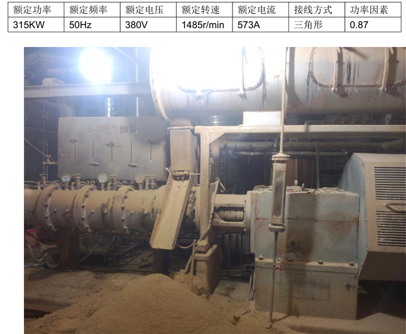 2、 、 改造設(shè)備概述: :客戶要求改造的設(shè)備為膨化機(jī),達(dá)315KW 功率(實際銘牌數(shù)據(jù)如下表1)。膨化機(jī)工作原理為:利用膨化機(jī)的不等距非標(biāo)準(zhǔn)螺旋系統(tǒng)的擠壓推進(jìn),物料中的氣體被排出,并迅速被物料填充,物料受剪切力作用而產(chǎn)生回流,使機(jī)膛內(nèi)的壓力增大,隨著摞旋與機(jī)膛間的磨擦使物料充分混合、擠壓、加熱、膠合、糊化而產(chǎn)生組織變化,原有的結(jié)構(gòu)受到破壞,同時機(jī)械能通過物料在膛內(nèi)的磨擦作用而轉(zhuǎn)化為熱能,使物料成為具有流動性質(zhì)的膠凝狀態(tài),物料被擠壓到出口時壓力由高壓瞬間變?yōu)槌海筛邷厮查g變?yōu)槌?,造成水分迅速地從組織結(jié)構(gòu)中蒸發(fā)出來,使其內(nèi)部形成無數(shù)微孔結(jié)構(gòu),再通過切割裝置,切割冷卻即膨化成形。