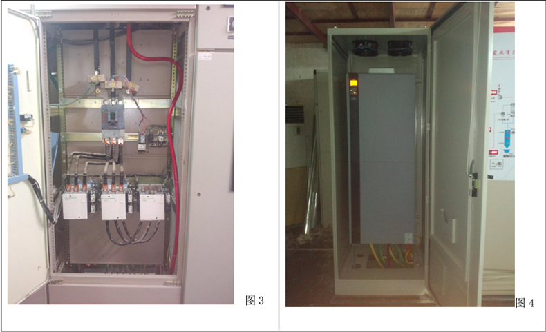 根據(jù)實際情況及以上的分析,電機(jī)采用丹佛斯 FC302 系列變頻器(額定功率 315KW,額定電流 600A)控制,變頻器前端加裝一個保護(hù)斷路器(額定電流 630A),因生產(chǎn)車間環(huán)境很惡劣,需為變頻器配備電柜(如上圖 4),放置于中央控制室。