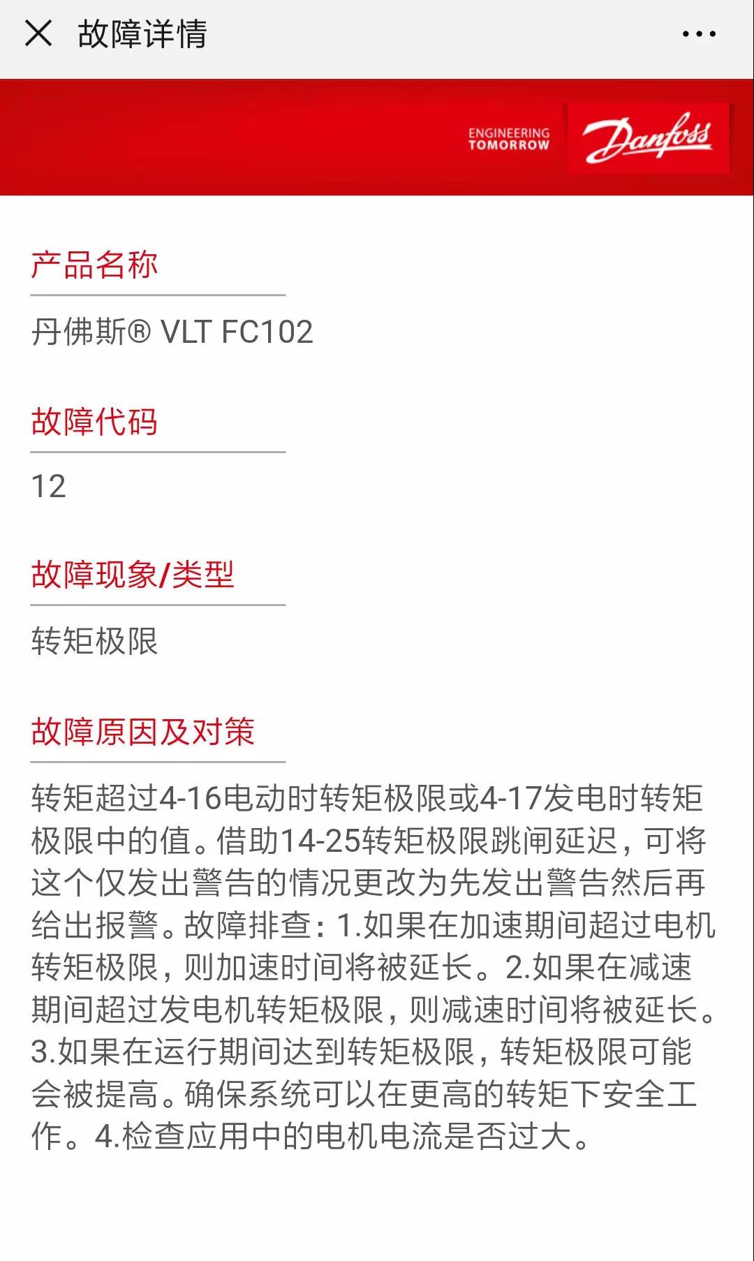 以上就是丹佛斯傳動(dòng)全新的故障速查系統(tǒng),我們希望,通過(guò)新版的故障速查系統(tǒng),能更好得與客戶拉近距離,為大家提供有效、優(yōu)質(zhì)的服務(wù)。