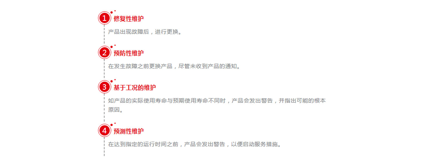 為何需要基于工況的維護?就是要在故障真正發(fā)生之前檢測潛在的故障。而修復性和預防性維護是根據(jù)故障(事件)或時間進行的,是機器設備在出現(xiàn)故障(修復性)或達到預先設定的運行時間(預防性)后予以維護。這類型的維護不使用來自實際應用的任何反饋。
