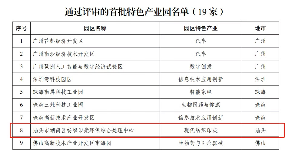這是其繼獲評“全國環(huán)境污染第三方治理試點園區(qū)”、“中國紡織印染循環(huán)經濟產業(yè)園示范基地”和“廣東省循環(huán)化改造試點園區(qū)”之后,又一重量級榮譽稱號。