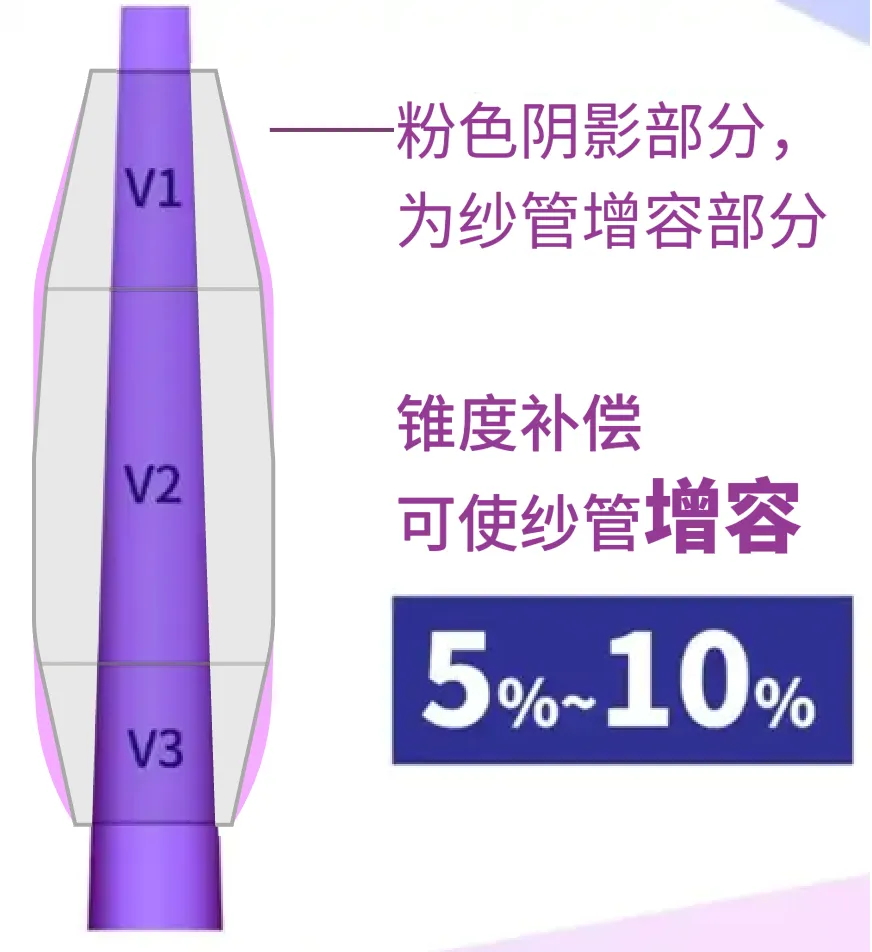 紗筒擴(kuò)容10%、脫圈少、成型更美觀